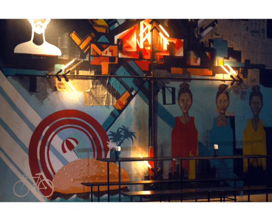 The Kiosk is gourmet burger brand. From the ceiling lamps, to the vintage newspaper wallpaper, the Kiosk had a quirky DIY aesthetic.
